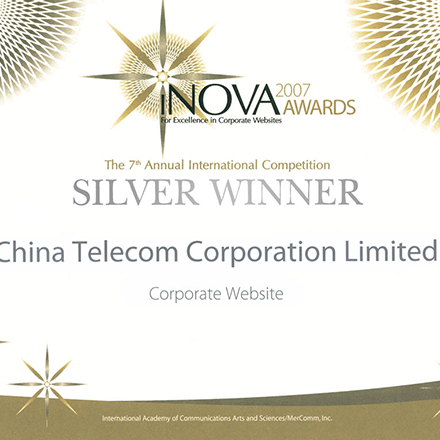 The corporate website of China Telecom Corporation Limited (www.chinatelecom-h.com) was accredited as the silver winner in the "iNova Awards", an international renowned website competition held in New York, the United States.