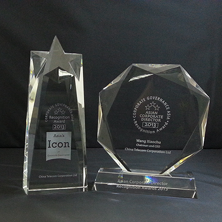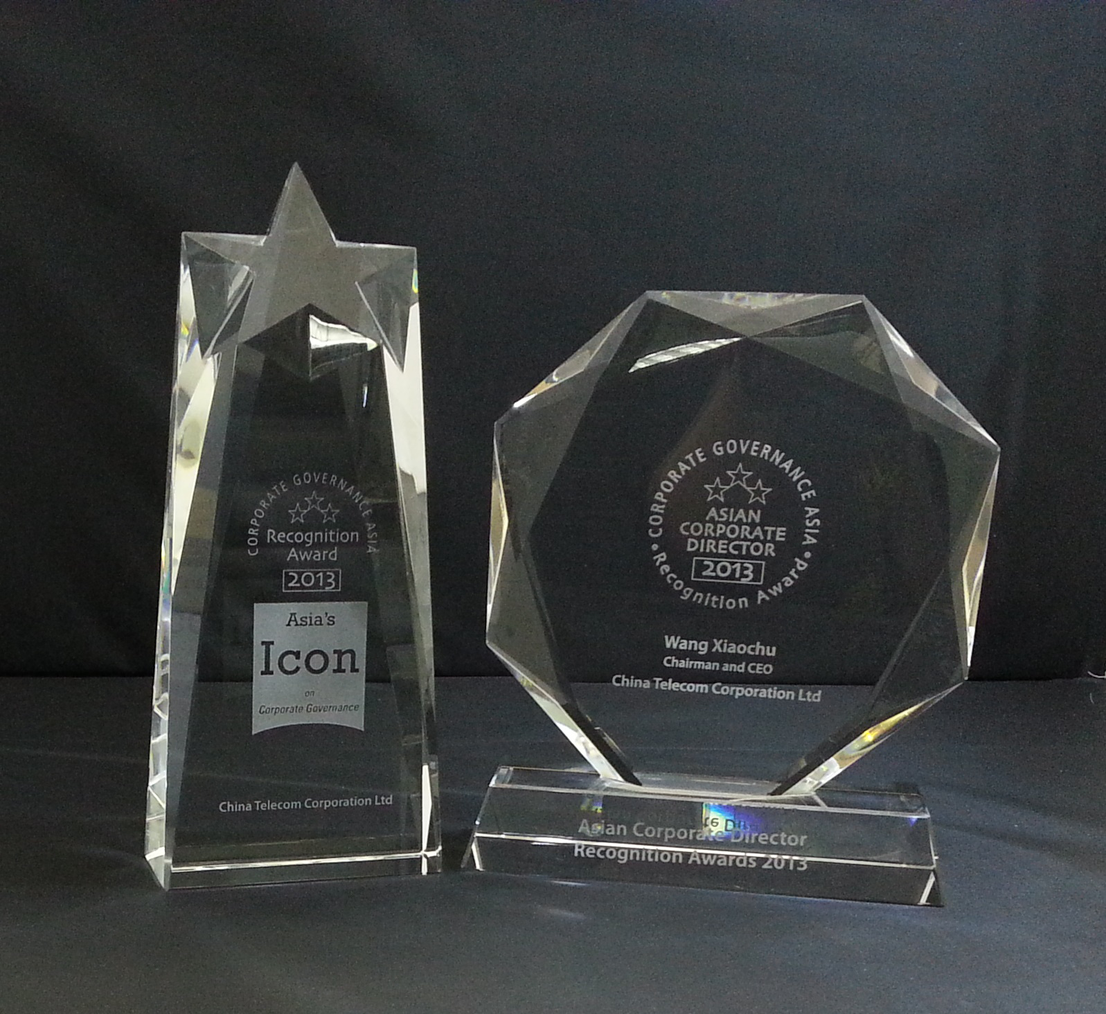 China Telecom Corporation Limited was awarded "The Best of Asia - Icon on Corporate Governance" in Corporate Governance Asia's 9th Recognition Awards 2013. In addition, Mr. Wang Xiaochu, Chairman & CEO, was honoured with "Asian Corporate Director Recognition Awards 2013".