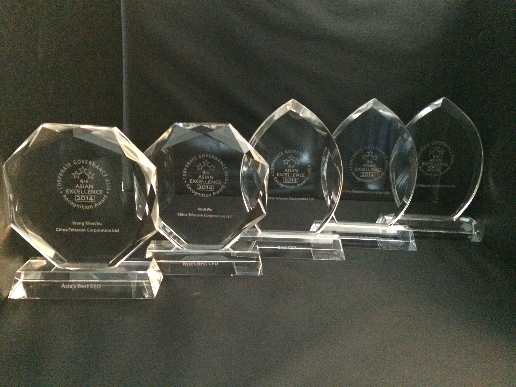 China Telecom Corporation Limited was awarded "The Best of Asia - Icon on Corporate Governance" in Corporate Governance Asia's Recognition Awards 2014. In addition, Mr. Wang Xiaochu, Chairman & CEO, was honoured with "Asian Corporate Director Recognition Awards 2014".