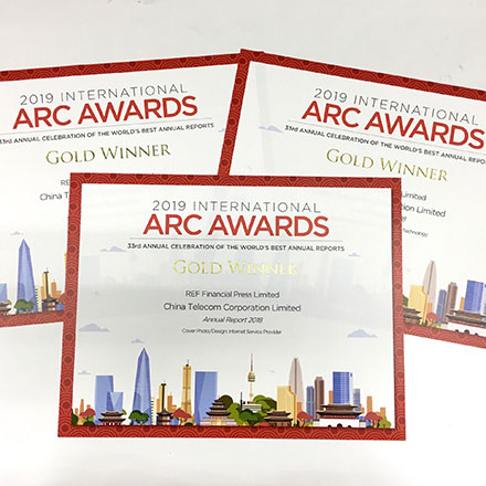 China Telecom Corporation Limited's 2018 Annual Report (print and online versions) "Intelligent Transformation to Co-share Value of Innovation" has won in total six platinum awards and five gold awards, and ranked No.3 of "Top 100 Reports Worldwide" (No.1 in Asia Pacific) in LACP 2018 Vision Awards by the League of American Communications Professionals LLC (LACP), marking one of the best award-winning records of the Company since its participation in the competition. In addition, the Company's print Annual Report has earned 3 gold awards in 2019 International ARC Awards.