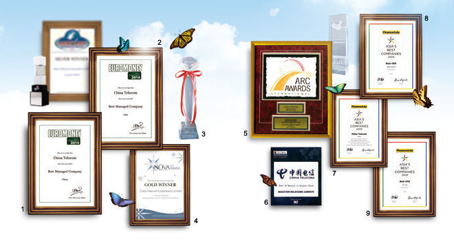 - The corporate website of the Company (www.chinatelecom-h.com) won the "Best Investor Relations Website" in Greater China in IR Global Rankings 2009.