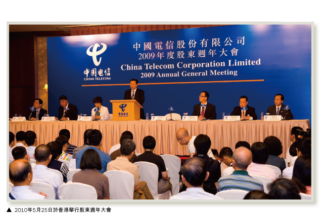 2010年,本公司共召開兩次股東大會,包括2009年度股東週年大會和一次特別股東大會。於2010年5月25日召開的股東週年大會審議通過了2009年度財務報告、國際獨立核數師報告、利潤分配及股息派發方案、有關授權董事會制訂2010年度預算、審計師續聘及酬金、授權董事會發行債權等多項重要議案。於2010年10月25日召開的特別股東大會審議批准了CDMA網絡容量租賃協議及其補充協議項下持續關連交易的續期和年度上限申請。