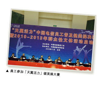 公司組織豐富多彩的群眾性文體活動,對群眾性文體活動進行安排部署,開展了「天翼景象」攝影比賽和「天翼活力」健美操等多種多樣的文體活動,滿足了員工文化需求,提高了素質,陶冶了情操,同時也服務了企業經營發展的需要。