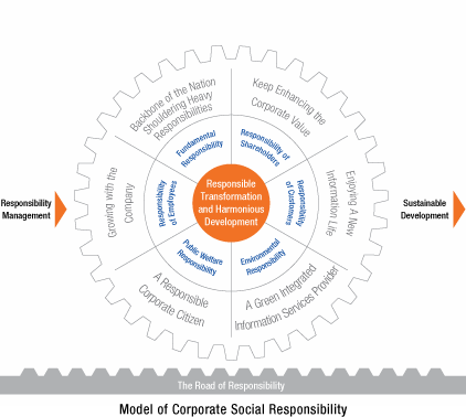 As the main national telecommunications operator in China, China Telecom has always adhered to its core philosophy of “comprehensive innovation, pursuing truth and pragmatism, respecting people and creating value together”. It operates its business according to the law with integrity and perseveres in scientific development. While conscientiously fulfilling its responsibility to shareholders, rewarding them and maintaining stable development, the Company has been active in fulfilling its social responsibilities, serving its customers, caring for its employees, protecting the environment and offering returns to the society. The Company has integrated its corporate social responsibilities into the provision of products and services and associated its development with sustainable economic, social and environmental development, aiming to promote harmony and advancement of the society.