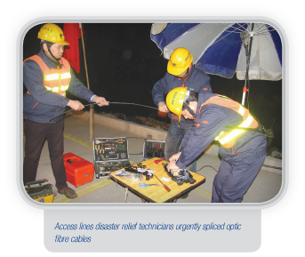 China Telecom is dedicated to securing smooth national communications as a top priority. Facing natural disasters such as snowstorms, earthquakes, floods and landslides, China Telecom has fully leveraged its strengths in emergency communications systems deployment and robust network capabilities to conduct repairs, rescues and communication services restoration, offering the earliest support for the nation and the public while minimising damages. In 2011, there were formidable tasks of flood control and drought relief. Attaching equal importance to both prevention and protection, China Telecom worked conscientiously in such areas as ideological understanding, organisational systems, pre-arranged planning measures, safety checks, team supplies and disaster reporting, in order to guarantee smooth communications and the safety of lives and property.