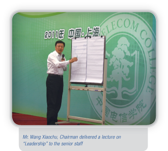 Focusing on the two major themes of the “Three New Roles” (a leader in intelligent pipelines, a provider of integrated platforms, and a participant in content and application development) and scale breakthroughs, the Company stepped up the training for operation managers. In 2011, we organised one research and study session for general managers at the provincial level, four sessions for general managers of local branches, and two sessions for deputy general managers at the provincial level. A total of 550 mid-to-high level managers attended these seminars. At the same time, the Company continued to organise and perfect the advanced leadership courses and its rank of instructions, driving the development of focused courses for mid-to-high level leadership and instructor certification, while promoting learning programmes such as “Transformation Leadership” and “Strategy Decoding” to the local branches’ leadership teams. We continued to hold leadership training courses for district and county-level chiefs and rural branch chiefs and to enhance leadership development for frontline management personnel.