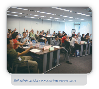 Focusing on enhancing the selling and maintenance skills for our frontline employees, we organised and conducted skills certification for five types of positions, namely network maintenance, government and enterprises, “Best Tone”, wireless network optimisation and VIP customer service, involving 14 job benchmarks. A total of 35,338 employees in 39 batches participated in the certification examinations. The training, certifications and skill competition were combined together to form synergic linkage effects. We organised about 20,000 “10000” call service officers and 10,000 VIP customer service managers to participate in trainings as well as competitions. In addition, 8,522 employees attended the VIP customer manager (Grade 4) certification theory examination. There were also competitions combining installation and maintenance with access network maintenance skills. We developed a series of training courses, which provided training to more than 70,000 employees.