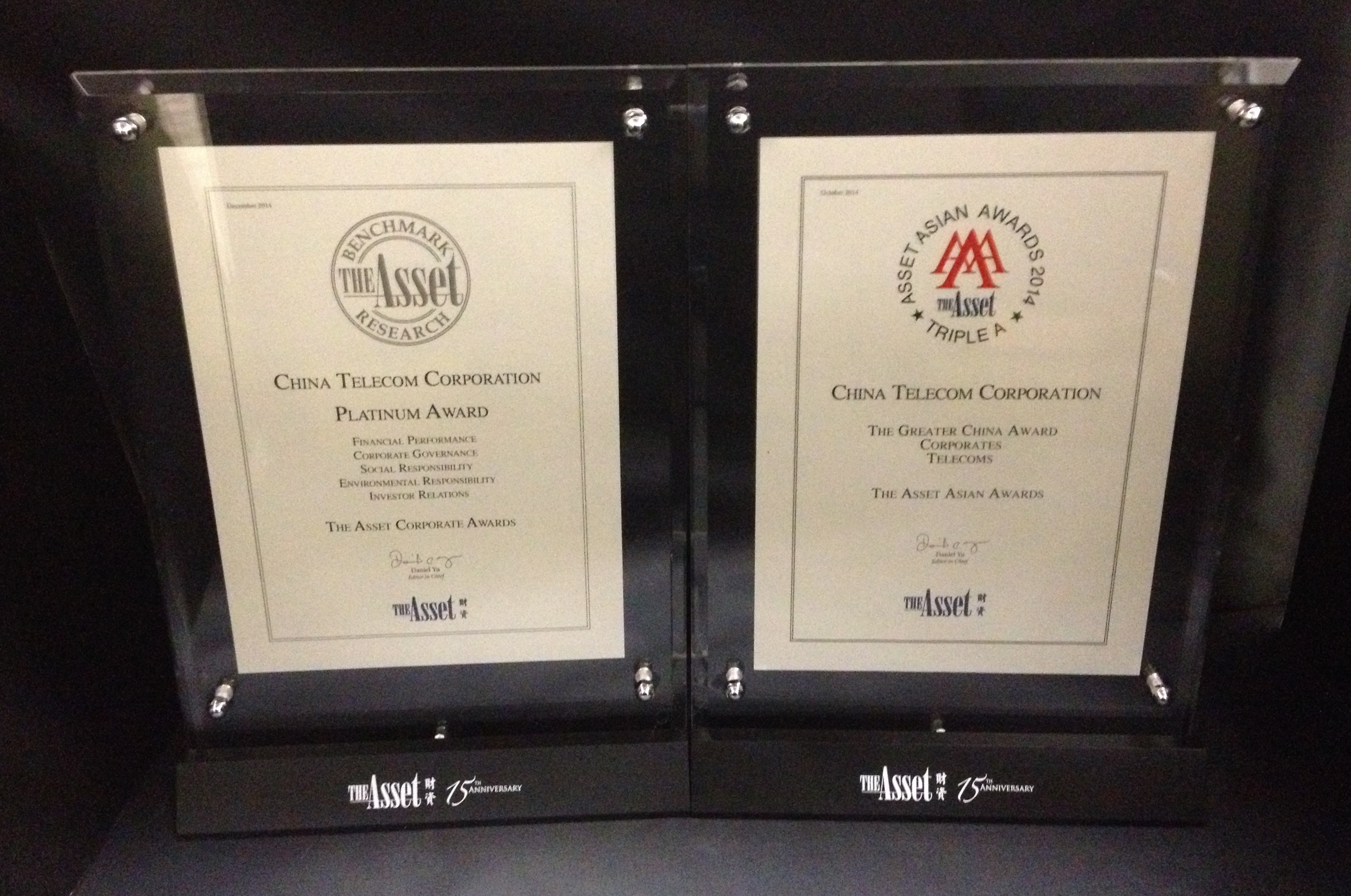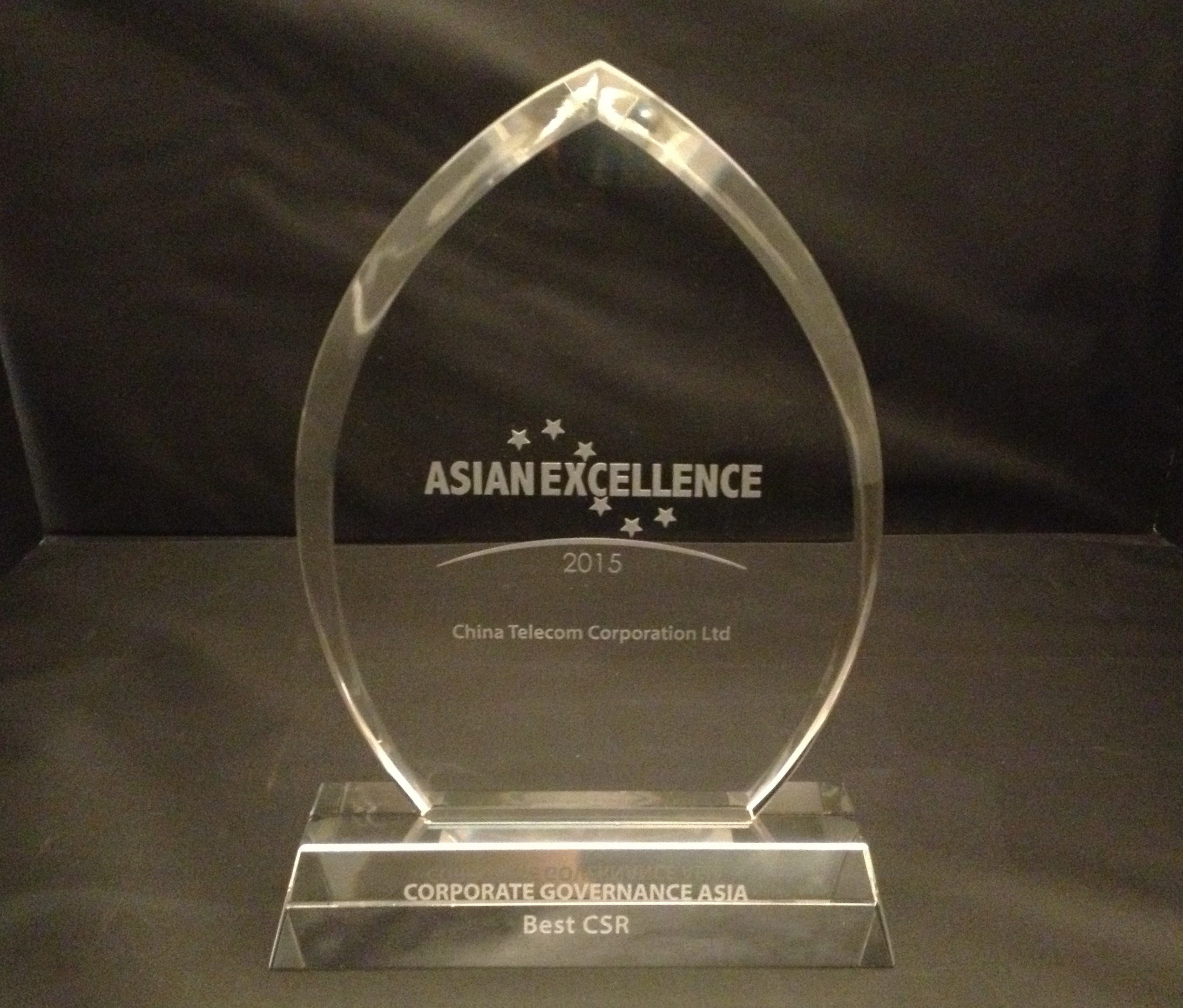 中国电信股份有限公司在亚洲著名企业管治专业杂志《Corporate Governance Asia》举办的「2015年度亚洲卓越企业表扬大奖」中荣获以下企业管治大奖: