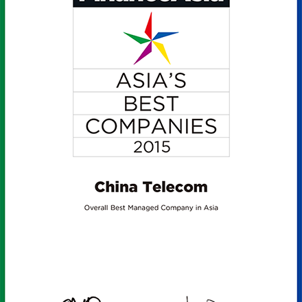 在《金融亚洲》(FinanceAsia)为表扬亚洲区内表现领先企业及管理团队而举办的第十五届年度亚洲最佳公司评选中,中国电信连续五年获得来自全球多个不同地区的基金经理及分析师评选为「亚洲全方位最佳管理公司」。