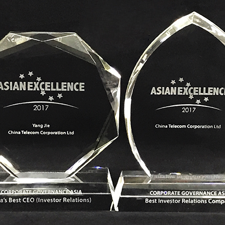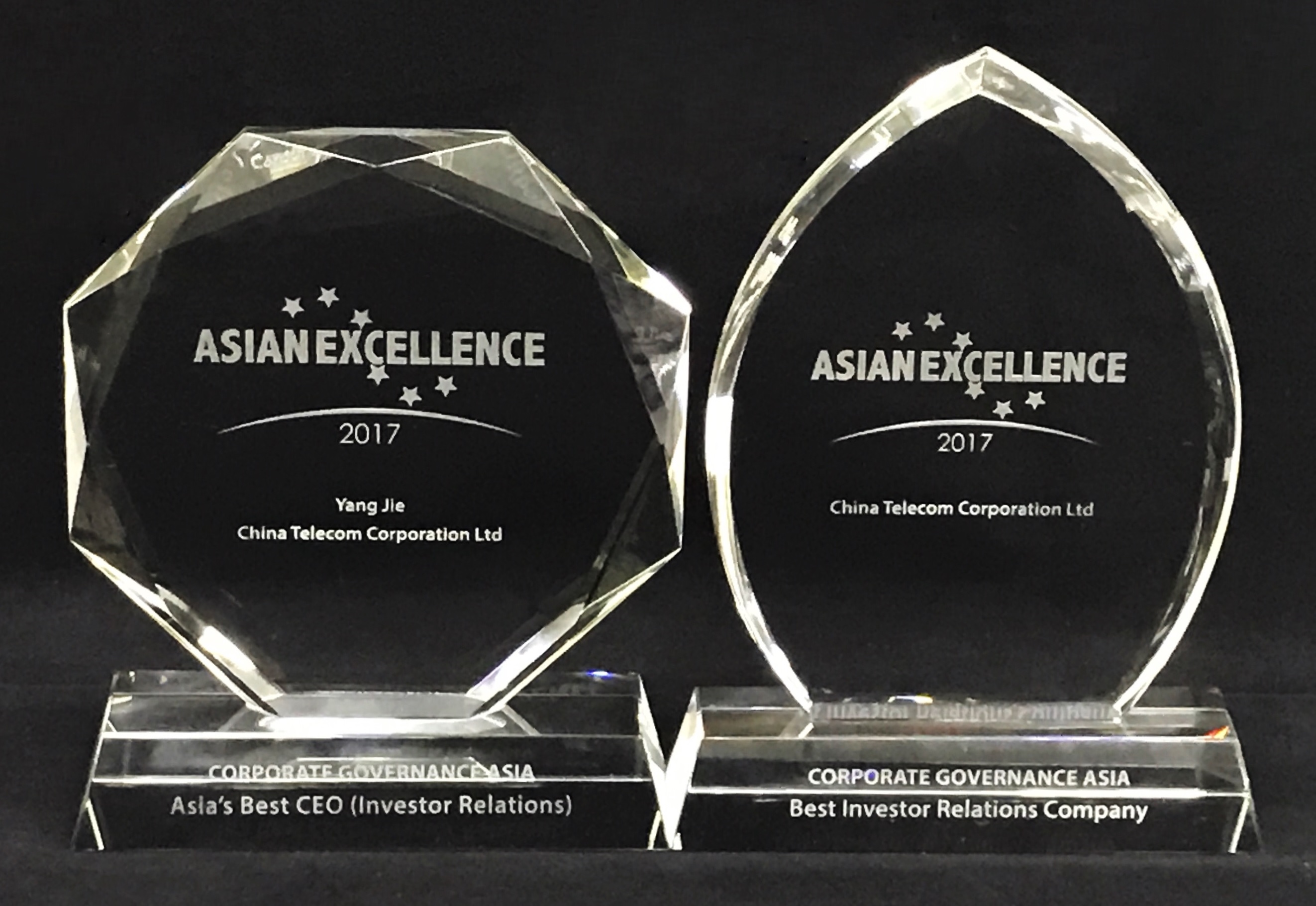 中国电信股份有限公司在亚洲著名企业管治专业杂志《Corporate Governance Asia》举办的「2017年度亚洲卓越企业表扬大奖」中荣获以下企业管治大奖: