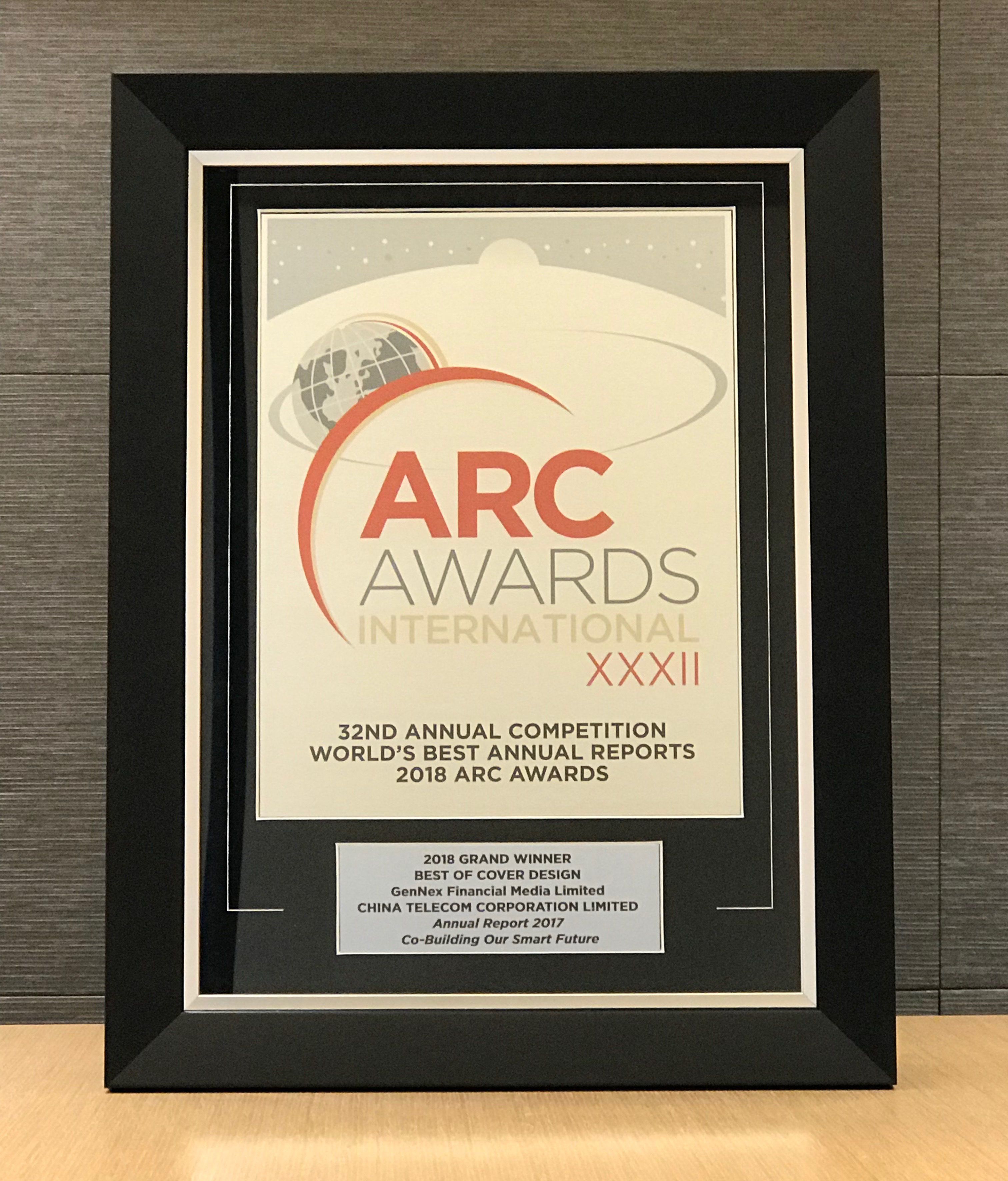 「2018年度国际ARC大奖」为全球最大型及最具独立代表性、旨在嘉许优秀年报及企业传讯的选举,被财经媒体誉为「年报奥斯卡颁奖礼」。有关奖项更是全球公认,为年报行业提供一个最高水准的评选平台。中国电信二零一七年报勇夺12项金奖,同时亦是在此项最多机构参与的盛事中唯一一家获颁至尊大奖的电信公司。