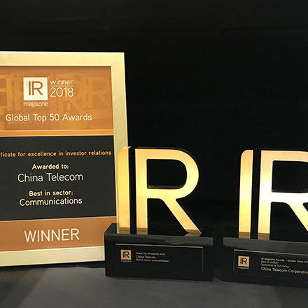 此外,中国电信在《投资者关系杂志》「2018年大中华区奖项评选」中荣获最佳投资者关系网站大奖,反映公司致力完善各传讯渠道,尤其在提升获取企业讯息,以及使用网上平台的便利性方面,广获投资者认同。