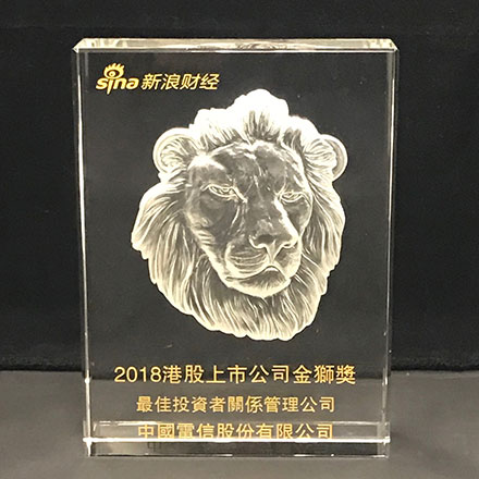 中国电信股份有限公司在首届「金狮奖」港股上市公司评选中,荣获「最佳投资者关系管理公司」奖项。
