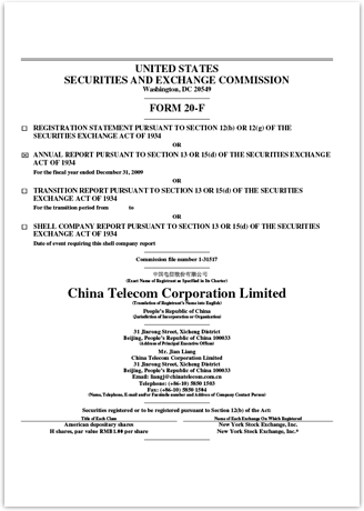 请注意:中国电信股份有限公司(「公司」)将应要求免费向任何股东提供公司经审计的全部财务报表的纸质版本,该财务报表已载于公司2009年12月31日截止年度的20-F表年报上。若有股东希望获取该财务报表的纸质版本,请向中国电信股份有限公司投资者关系部索取(地址:香港湾仔告士打道108号光大中心38楼;电邮:ir@chinatelecom-h.com;电话:852-2877-9777;传真:852-2877-0988)。
