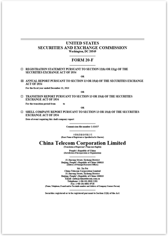 请注意:中国电信股份有限公司(「公司」)将应要求免费向任何股东提供公司经审计的全部财务报表的纸质版本,该财务报表已载于公司2015年12月31日截止年度的20-F表年报上。若有股东希望获取该财务报表的纸质版本,请向中国电信股份有限公司投资者关系部索取(地址:香港湾仔告士打道108号光大中心38楼;电邮:ir@chinatelecom-h.com;电话:852-2877-9777;传真:852-2877-0988)。
