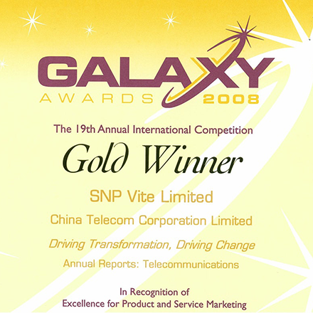 中國電信股份公司2007年年報於國際權威企業傳訊評選《2008年度國際GALAXY大獎》中,榮獲《國際電信公司年報組別》金獎。