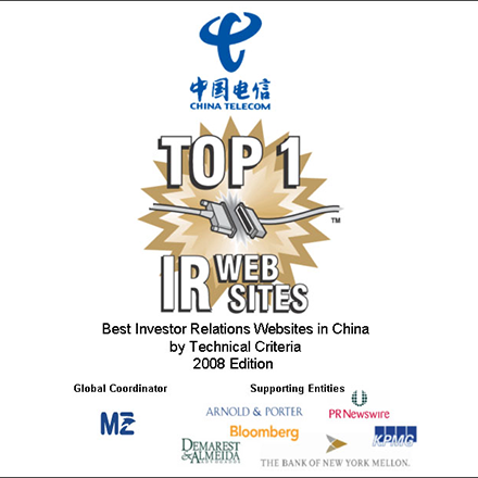 中國電信股份有限公司網站(www.chinatelecom-h.com)在2008年《IR Global Rankings》的評選中,獲選為中國區「最佳投資者關係網站」。
