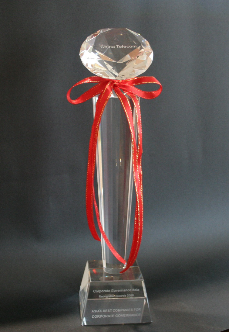 中國電信股份有限公司在《Corporate Governance Asia》雜誌2009年亞洲最佳公司治理企業評選中,獲評選為亞洲中國區最佳公司治理企業。該獎項主要頒發予在整體公司治理水平、管理能力、信息透明度、董事會及屬下委員會的工作、投資者關係工作及企業社會責任工作等多個範疇有傑出表現的上市公司。