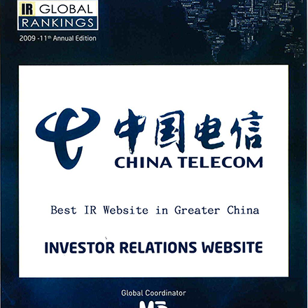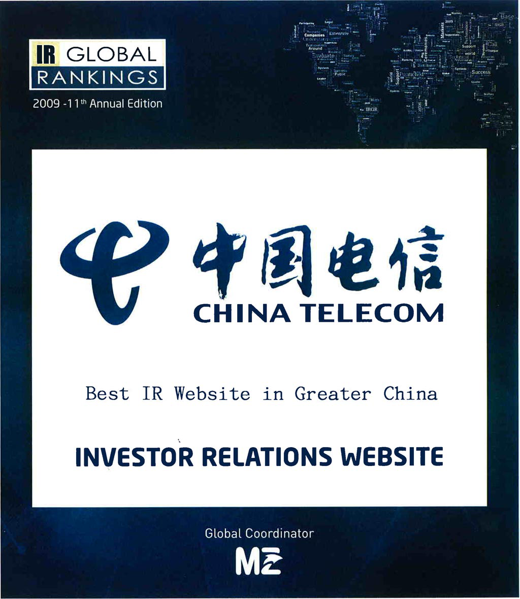 中國電信股份有限公司網站(www.chinatelecom-h.com)在2009年《IR Global Rankings》的評選中,獲選為大中華地區「最佳投資者關係網站」。