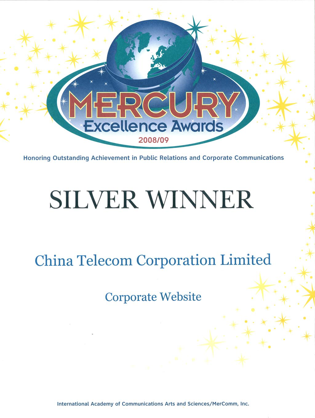 中國電信股份有限公司網站(www.chinatelecom-h.com)在2009年《Mercury Excellence Awards》中,獲得「全球最佳投資者關係網站」銀獎。