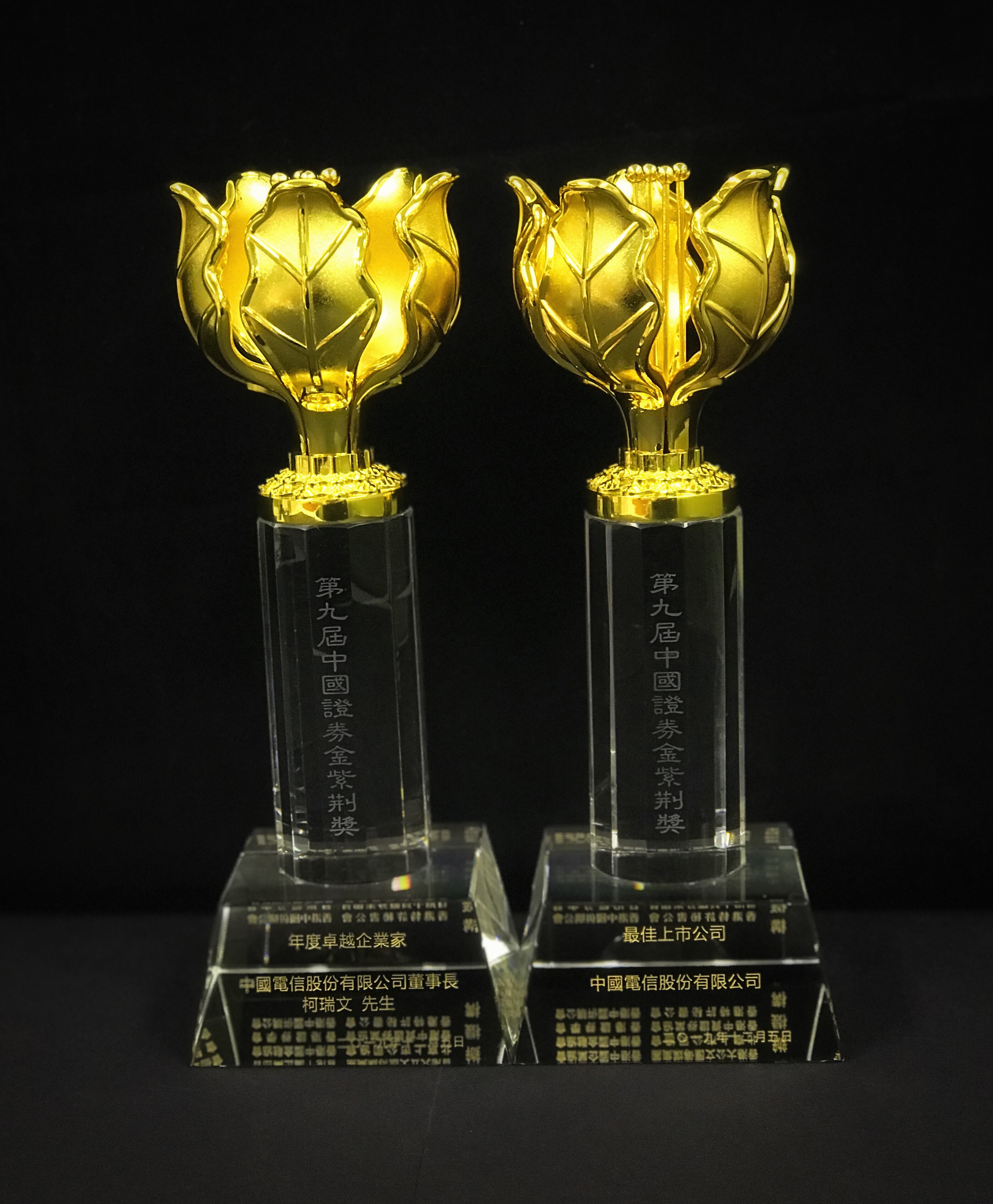 中國電信股份有限公司於第九屆「中國證券金紫荊獎」中,獲頒發「最佳上市公司獎」。此外,公司董事長兼首席執行官柯瑞文先生榮獲「年度卓越企業家獎」。
