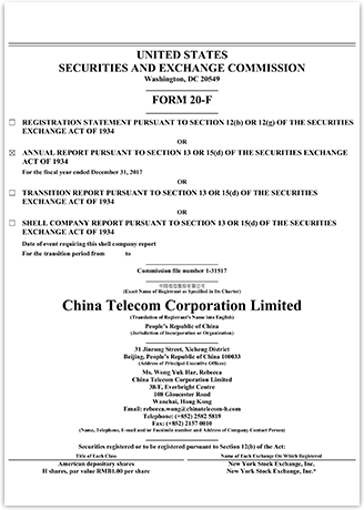 請注意:中國電信股份有限公司(「公司」)將應要求免費向任何股東提供公司經審計的全部財務報表的紙質版本,該財務報表已載於公司2017年12月31日截止年度的20-F表年報上。若有股東希望獲取該財務報表的紙質版本,請向中國電信股份有限公司投資者關係部索取(地址:香港灣仔告士打道108號光大中心38樓;電郵:ir@chinatelecom-h.com;IR 專線:852-2582-0388;傳真:852-2877-0988)。